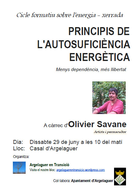 Hem començat avui el Cicle formatiu sobre l’energia que la comissió d’energia d’AenT ha organitzat amb la xerrada d’Olivier Savane sobre els Principis de l’autosuficiència energètica.