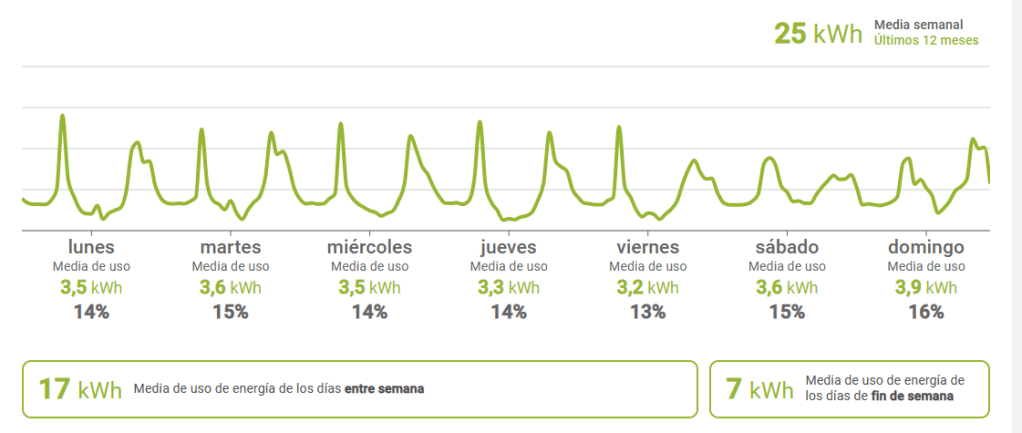 Per posar un exemple concret, el consum mig anual a casa meva (una casa unifamiliar de 120 m²) és d’uns 1.400 kWh. Aquesta dada pot servir com a referència per a persones que considerin una vida energèticament frugal però satisfactòria. Aquesta xifra és possible gràcies a un ús acurat dels electrodomèstics, a l’absència d’aparells innecessaris i a una aposta per la simplicitat voluntària.