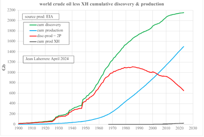 Segons Laherrère i altres geòlegs independents, la producció mundial de petroli cru (sense líquids no convencionals ni biocombustibles) ja va assolir el pic entre 2018 i 2020, i ara entrem en una fase de declivi estructural. Els augments temporals que observem només reflecteixen l’ús intensiu de tècniques costoses o la manipulació estadística de categories energètiques.
